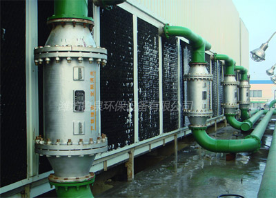 2003年6月,世界最大的純堿生產(chǎn)車間利用春季檢修時間,安裝配套磁化除垢器對工業(yè)循環(huán)水進(jìn)行深度處理,其主要目的是為解決水中硬度和氯離子含量超標(biāo)而引起的對設(shè)備、管道、泵閥的腐蝕和水垢釋出問題。十余年的應(yīng)用實(shí)例表明,磁化除垢器的防腐除垢成效顯著,性能非常穩(wěn)定。